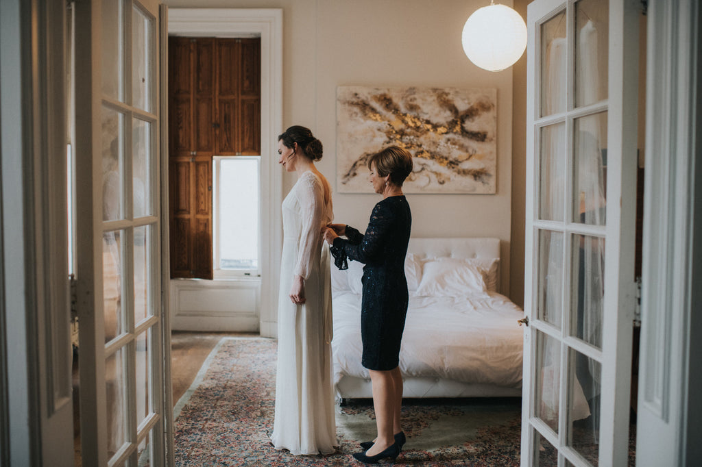 Most importantly, she chose the right photographer who had vision and talent to match the couple's style. Through Jessie Casey's lens, we get to experience the joy of Julie getting ready for her wedding and she climbed up the latter to the roof to meet her groom for the first time for the amazing photo shoot before the wedding, literally on top of the world.
